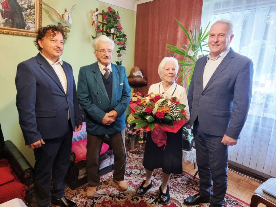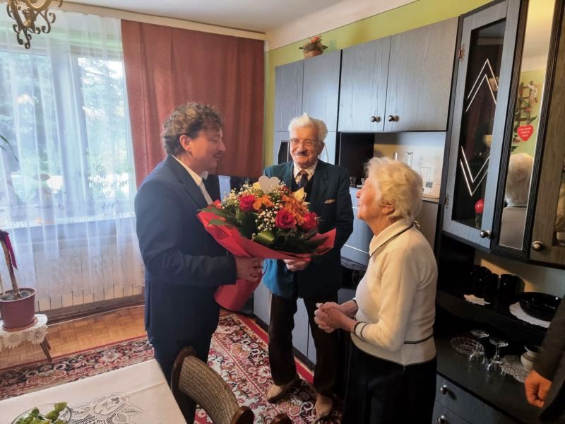 Z okazji tak wyjątkowej rocznicy jubilatów odwiedził burmistrz Jedlni-Letniska, Rafał Kornat wraz ze swoim zastępcą, Tomaszem Siczkiem, aby osobiście pogratulować, złożyć życzenia i wręczyć drobne upominki.